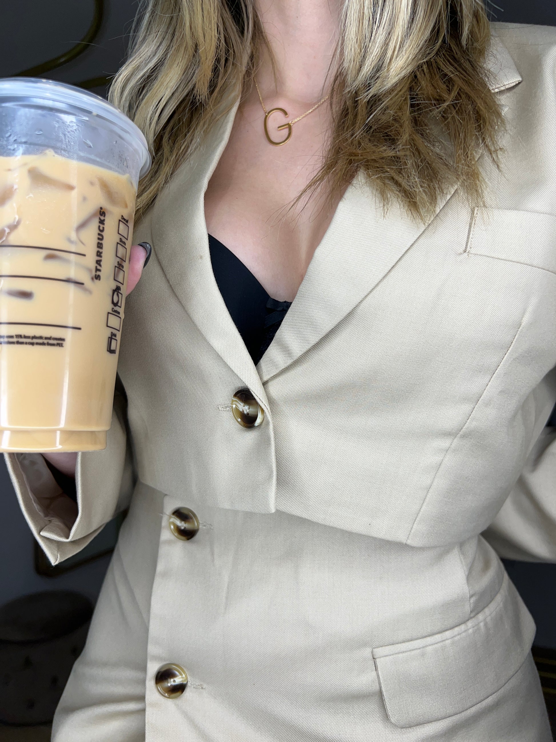 Set of pants/skirt and vest. Color is cream and it runs true to size. Model is wearing size medium.
