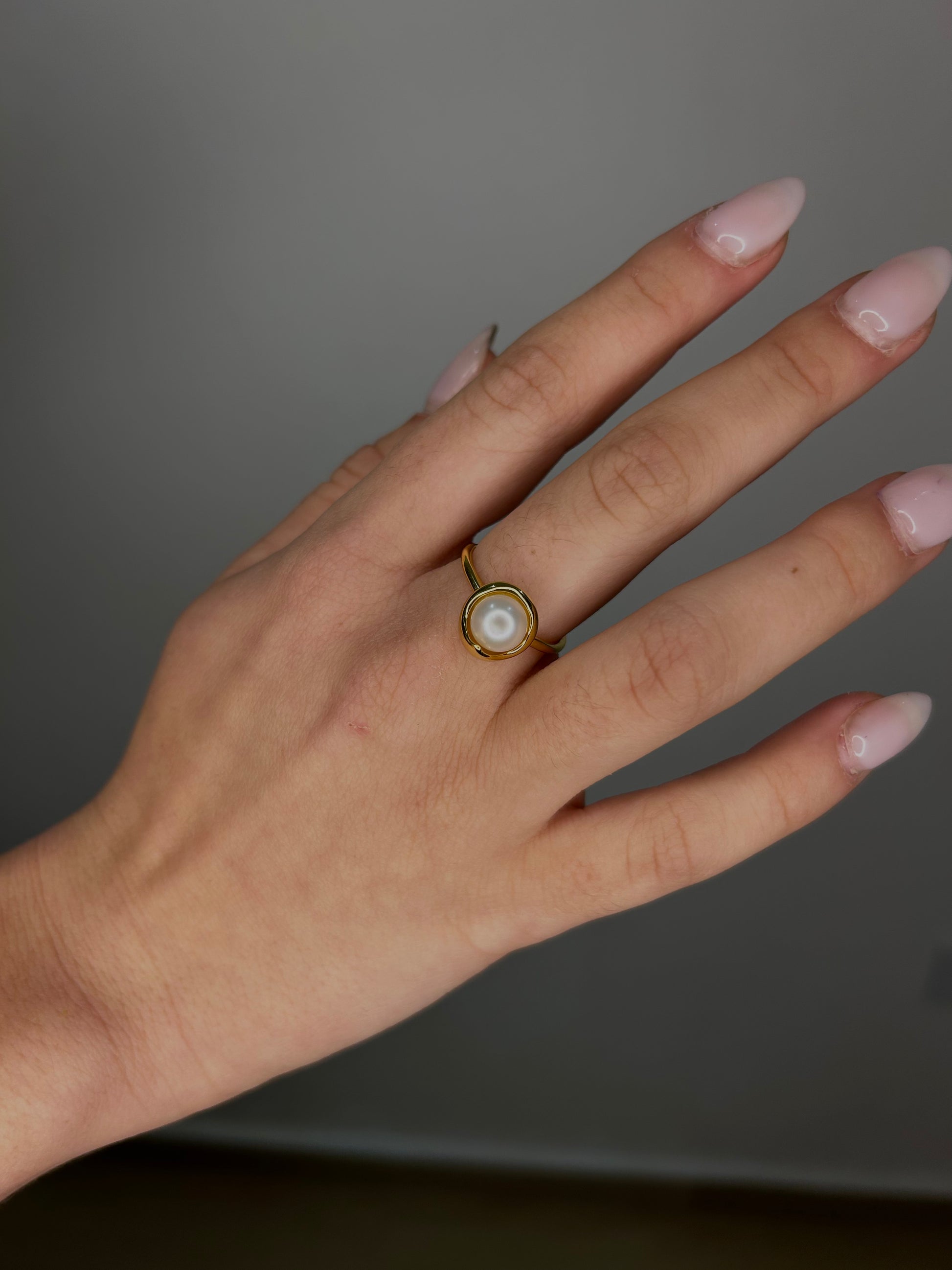 One size, adjustable 18K gold filled ring. Fresh water pearl 8.8mm.